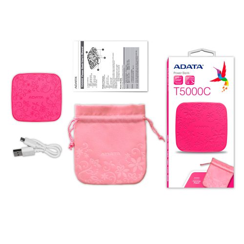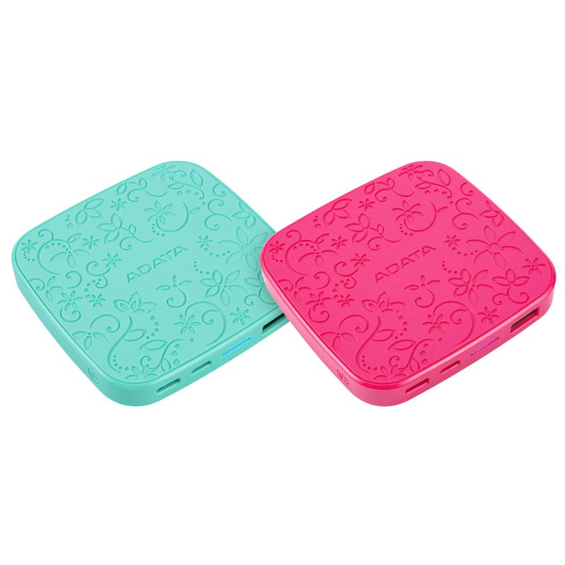 پاور بانک T5000C ای دیتا با رنگ های صورتی و آبی و بدنه ای با طراحی نقش برجسته گل های بهاری، شادی و زیبایی را به همراه می آورد.