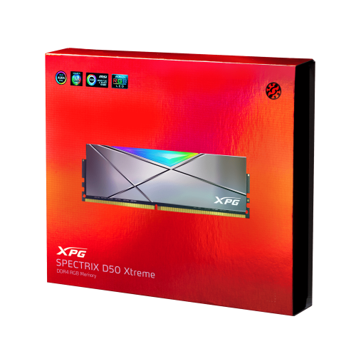 سرعت فوق العاده 5000MHz، اما درباره ماژول رم XPG SPECTRIX D50 Xtreme DDR4 RGB همه چیز در سرعت خلاصه نمی شود. این رم دارای یک هیت سینک زیبا، با خطوط هندسی و نورپردازی RGB خیره کننده است که کارایی و زیبایی را در کنار هم ارائه می کند.