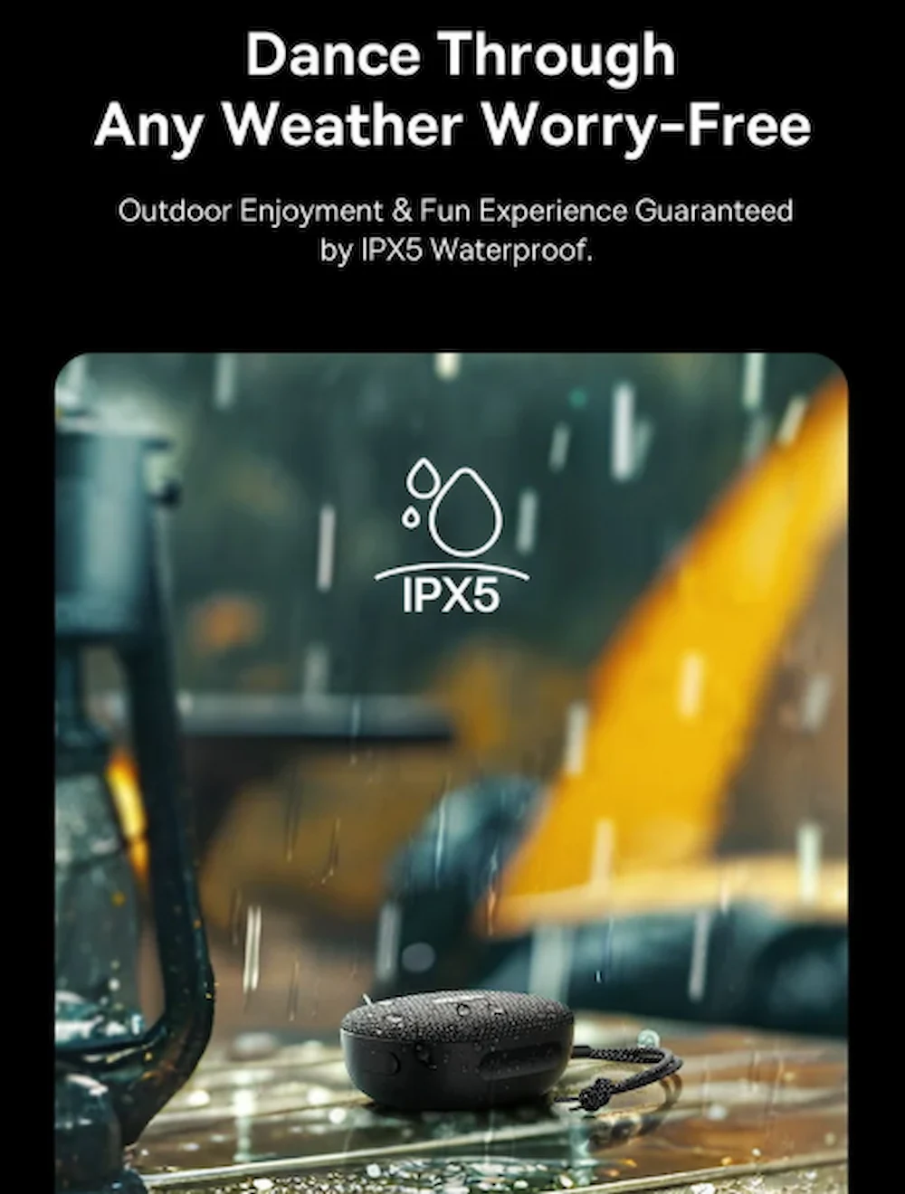 استاندارد IPX5 به اسپیکر مقاومت در برابر پاشش آب، باران سبک و گردوغبار میبخشد.