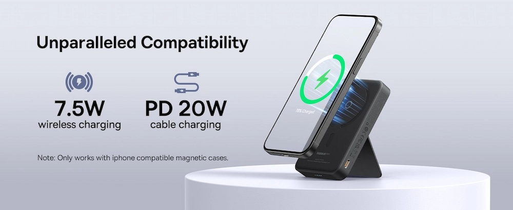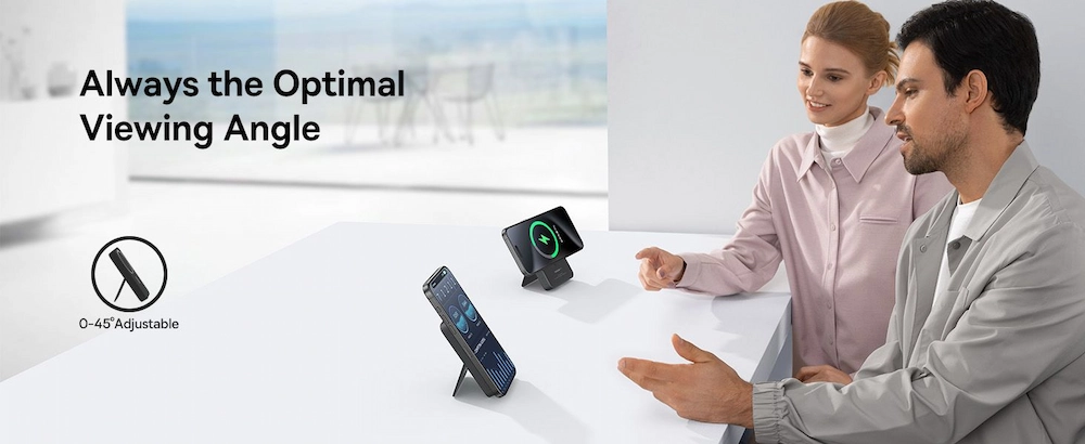کابلی را در قالبی باریک و سبک ارائه می‌دهد. با پایهٔ تاشوی داخلی، می‌توان گوشی را به صورت عمودی یا افقی و سازگار با حالت Standby در iOS 17 قرار داد.