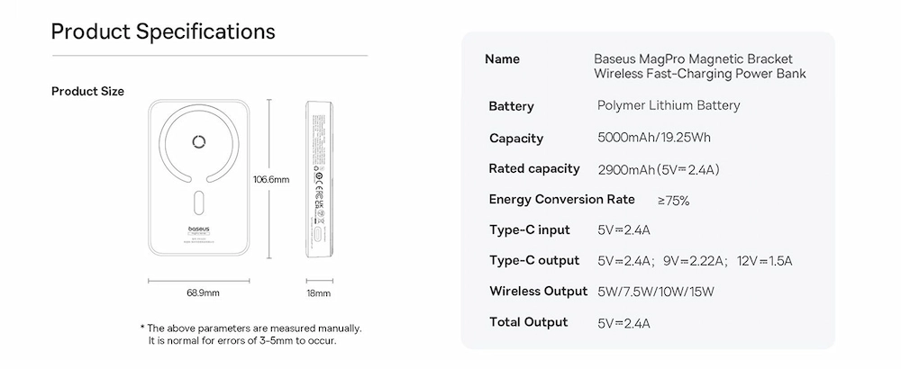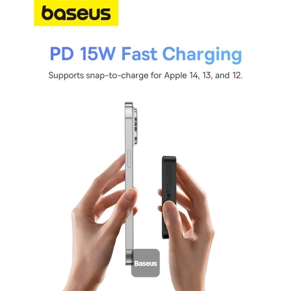 پاوربانک Baseus MagPro Magnetic Bracket 5000 mAh 20 W طراحی شده برای سری آیفون 15/14/13/12 است و امکان شارژ بی‌سیم مغناطیسی و