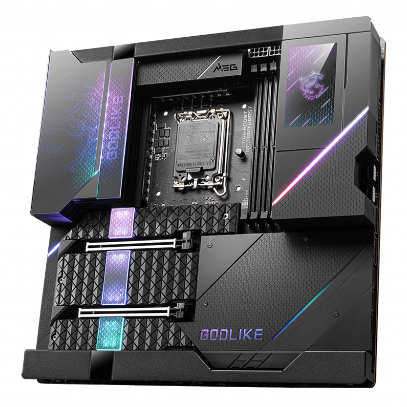 مادبردی زیر پوششی از هیتسینکهای آلومینیومی سیاه و عمیق با الگوهای مثلثی. به همراه اژدهایی پر ابهت که با شیشهای براق پوشانده شده است. به علاوه، ستونی زیبا از نورپردازی RGB هم با افکتهای خاص خودش چشمان هر بینندهای را به خود جلب میکند. مادربرد MEG Z690 GODLIKE نمادی از قدرت بیپایان یک دنیاست که برای هر چالشی آماده است.