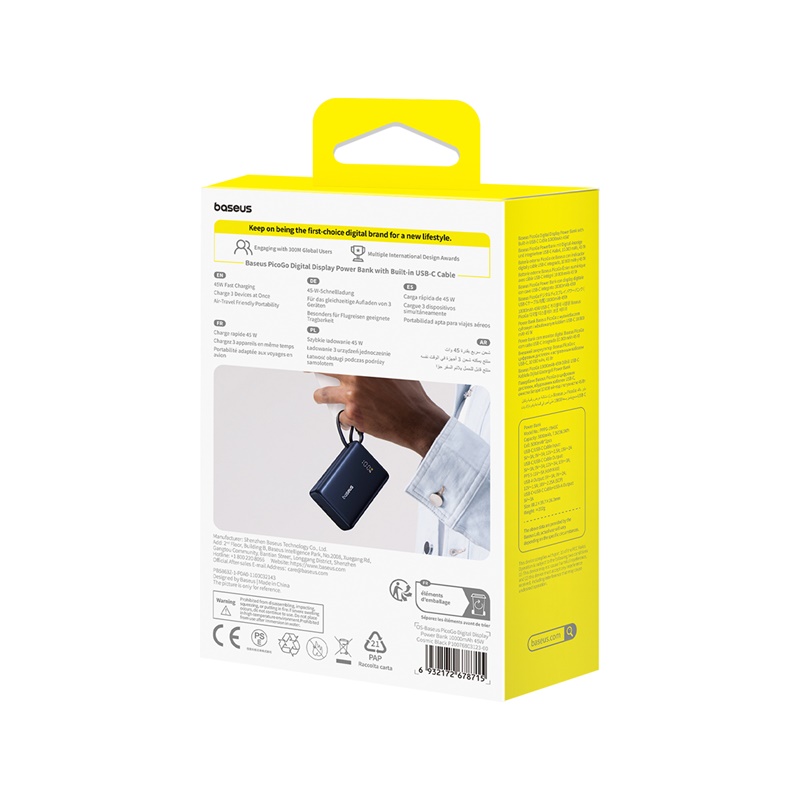 یکی از مهمترین نقاط قوت Baseus PicoGo، توان خروجی حداکثر ۴۵ وات است. این عدد برای یک پاوربانک با این ابعاد، کاملاً چشمگیر است. شما میتوانید با استفاده از پورت USB-C این پاوربانک:
