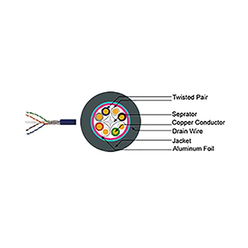 - کابل شبکه Cat 6 FTP سانت دارای فویل (محافظ فلزی) می باشد که حداکثر مقاومت در برابر نویزهای محیط را ایجاد می کند.